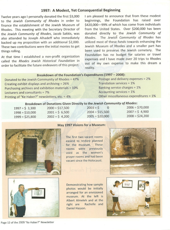 Second, I set up the Rhodes Jewish Historical Foundation (RJHF), a 501 (c)(3) non-profit organization based in Los Angeles, to be used as a vehicle for furthering this goal.